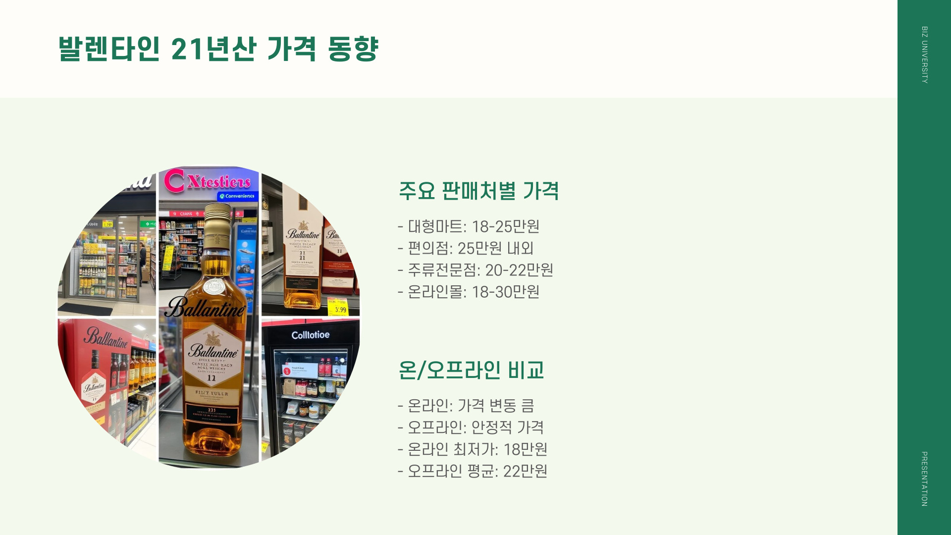 발렌타인 21년산의 가격은 다양한 요인에 따라 달라집니다. 가장 큰 영향을 미치는 요소 중 하나는 수요와 공급의 법칙입니다. 희소성이 높을수록 가격이 상승하는 경향이 있으며, 특정 시즌이나 이벤트에 따라 수요가 급증할 수 있습니다. 예를 들어, 발렌타인 데이와 같은 특별한 날에는 이 위스키의 수요가 늘어나 가격이 상승하는 현상을 볼 수 있습니다.