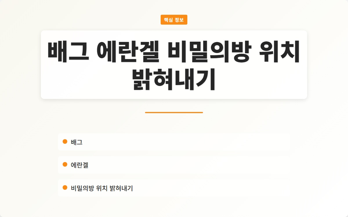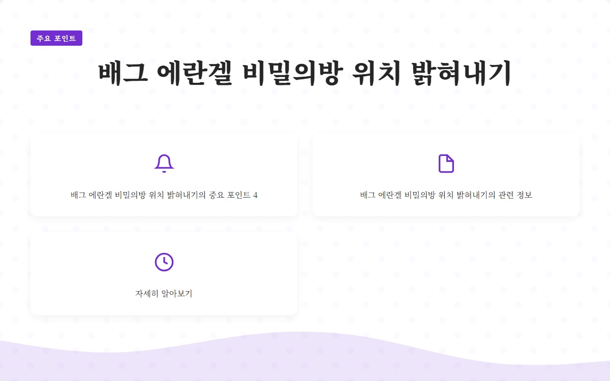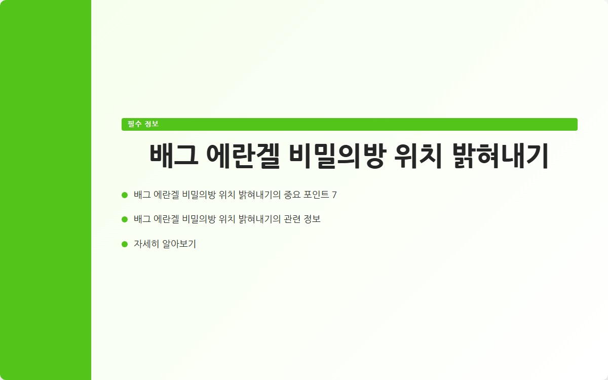 - 타이밍: 비밀의 방은 적이 덜 몰리는 시간대에 탐색하는 것이 좋습니다.