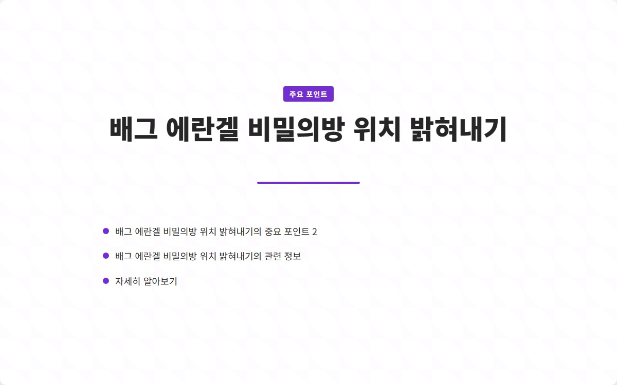 비밀의 방을 알고 활용함으로써, 배그 에란겔에서 더욱 흥미로운 경험을 할 수 있습니다. 앞으로의 게임에서 이러한 방을 찾아 전략적 이점을 누리길 바랍니다. 성공적인 사냥을 기원합니다!
