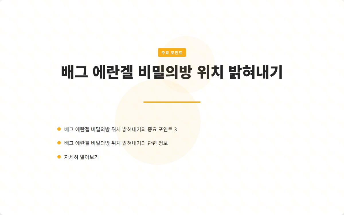 비밀의 방의 위치를 알고 있다면 지도를 뛰어넘는 탐험의 재미와 함께 뜻밖의 상황에서 유리한 고지를 점할 수 있습니다. 이를 통해 배그에서의 경험이 더욱 풍부해질 것입니다.