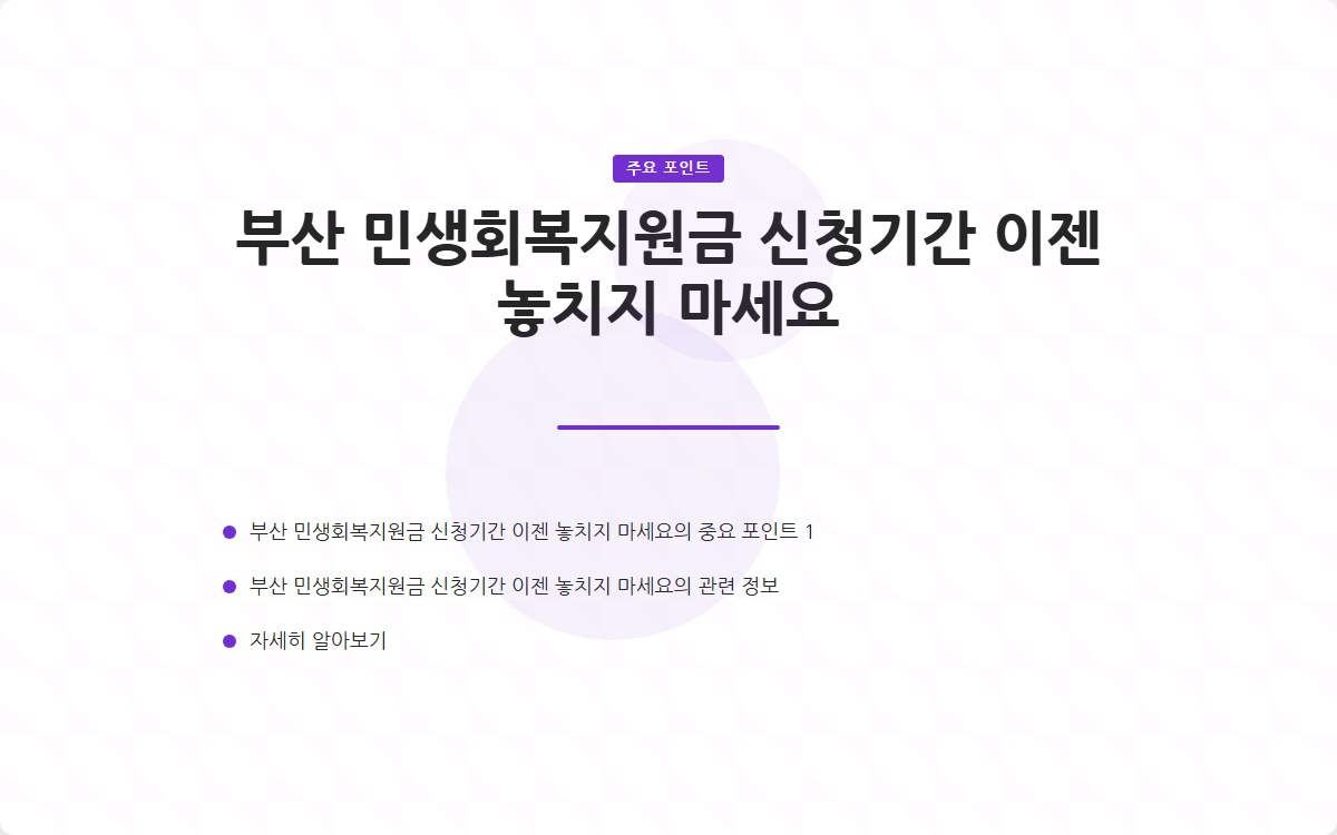 부산 민생회복지원금 신청기간 동안 꼭 신청하시길 바랍니다. 저소득층과 취약계층을 위한 지원금이므로, 필요한 모든 서류를 준비하여 온라인 혹은 오프라인으로 신청하세요. 신청을 놓치지 마세요!
