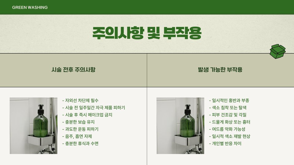 - 부작용 발생 가능성이 있으며, 적절한 사후 관리가 중요합니다.