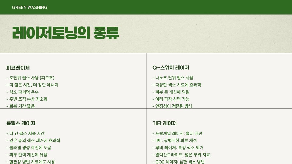 - 레이저토닝은 피부 톤 개선과 자신감 향상에 도움을 줌