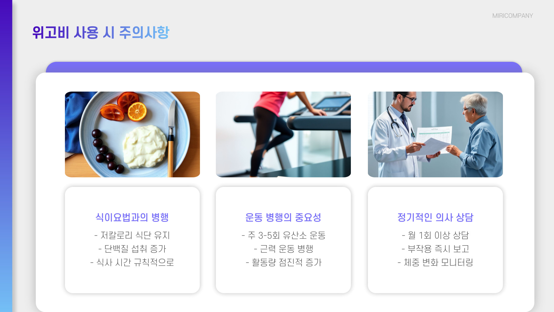 | 의사 상담 | 위고비 사용 전 반드시 의사와 상담하기 |