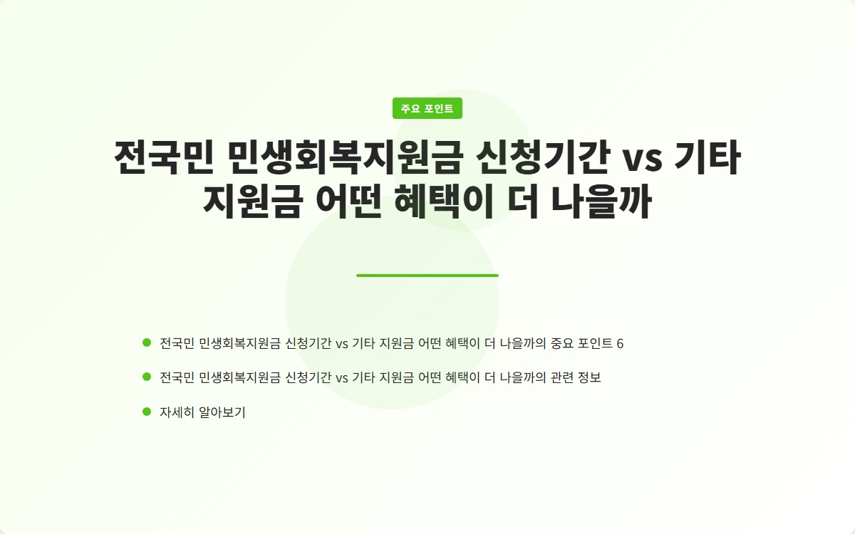 이 글을 통해 민생회복지원금의 신청 기간과 기타 지원금과의 비교를 통해 어떤 혜택이 더 나은지 알아보겠습니다.