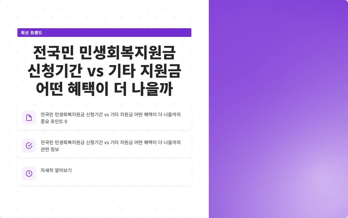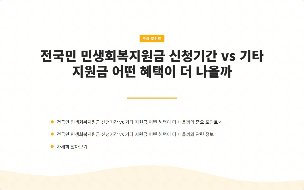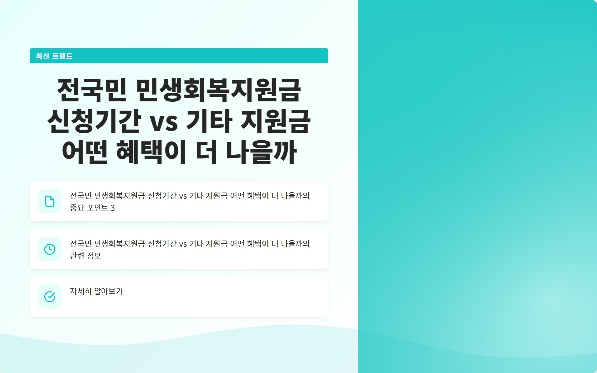 이 글을 통해 민생회복지원금의 신청 기간과 기타 지원금과의 비교를 통해 어떤 혜택이 더 나은지 알아보겠습니다.