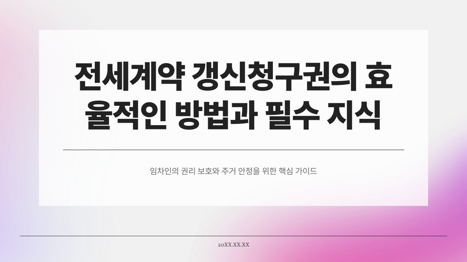 전세계약은 주택 임대차 계약에서 임차인이 계약을 갱신할 수 있는 권리를 말하며, 이는 임차인의 안정적인 거주를 보장하는 중요한 요소입니다. 특히, 갱신청구권은 임차인이 계약 종료 시점에 임대인에게 계약 갱신을 요구할 수 있는 권리로, 법적으로 보호받고 있습니다. 이 글에서는 전세계약 갱신청구권을 효율적으로 활용하는 방법과 반드시 알아야 할 핵심 지식에 대해 자세히 알아보겠습니다.