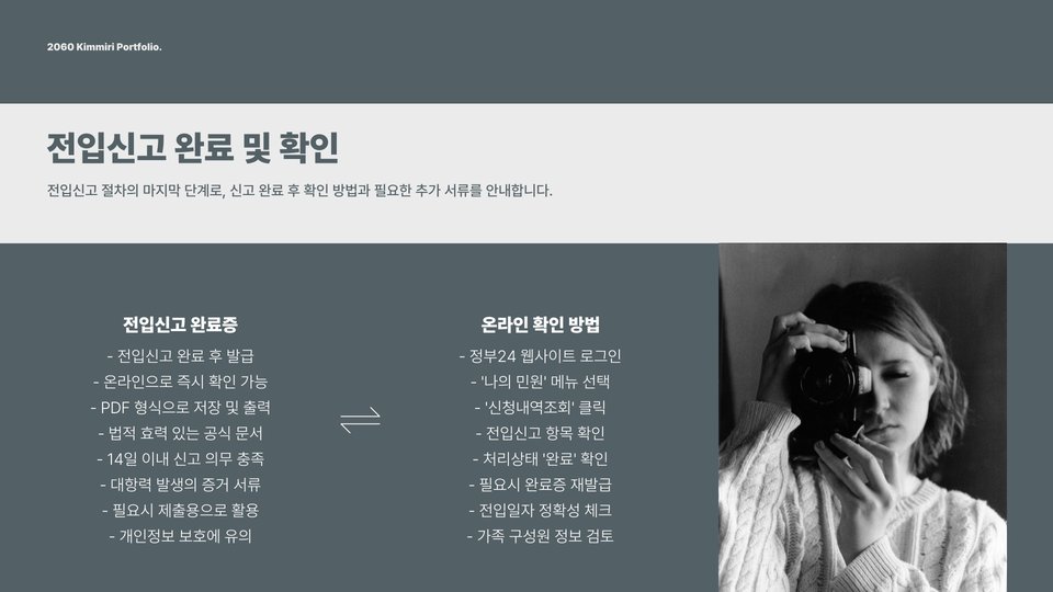 입력이 완료되면, 제출 버튼을 클릭하여 전입신고가 완료됩니다. 이후에는 처리 결과를 확인할 수 있으며, 필요한 경우 추가 서류를 제출할 수도 있습니다. 이 과정에서 요구되는 서류는 보통 주민등록증과 이사 계약서 등입니다.