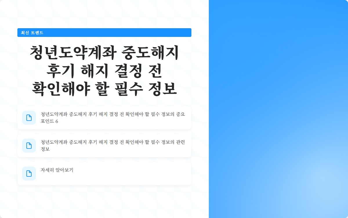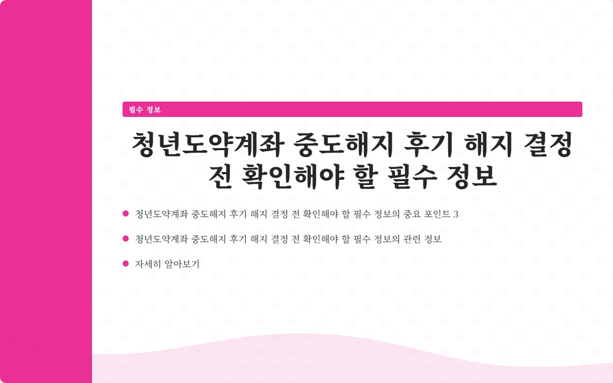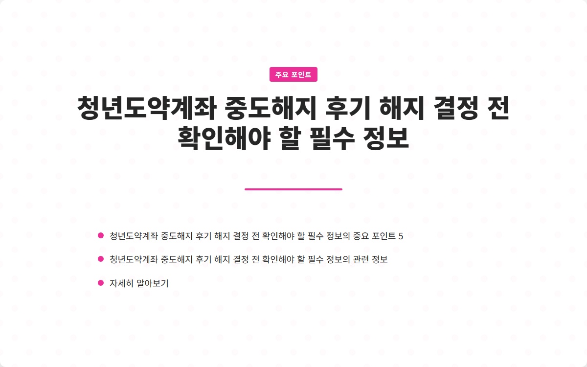 이 글을 통해 청년도약계좌 중도해지와 관련된 핵심 정보를 제공하고, 중도해지 시 유의사항을 명확히 알아보도록 하겠습니다.