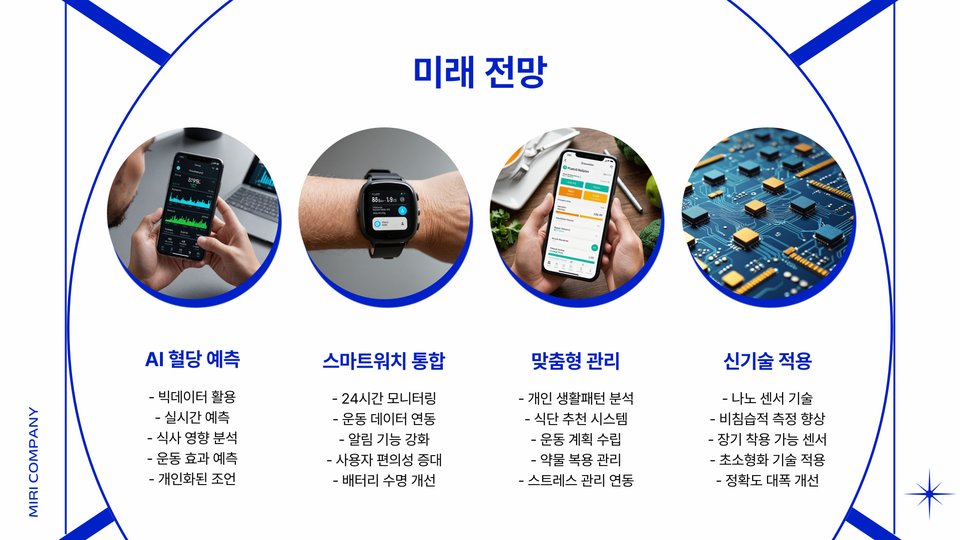 또한, 웨어러블 기술과의 통합이 더욱 두드러질 것입니다. 손목 시계 형태의 웨어러블 기기에서 혈당을 측정하고 더 간편히 관리할 수 있는 시대가 가속화 될 것입니다. 이러한 제품들은 일상 생활 속에서 자연스럽게 혈당을 관리할 수 있게 하여, 당뇨 환자들에게 큰 도움이 될 전망입니다.
